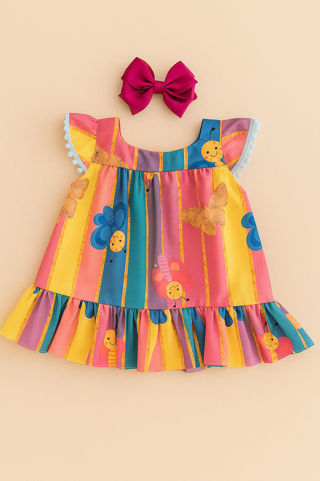 Cada detalhe é projetado para destacar a doçura da sua princesa. De festas a passeios especiais, este vestido é a escolha perfeita. Estampas vibrantes, alegres e divertidas.