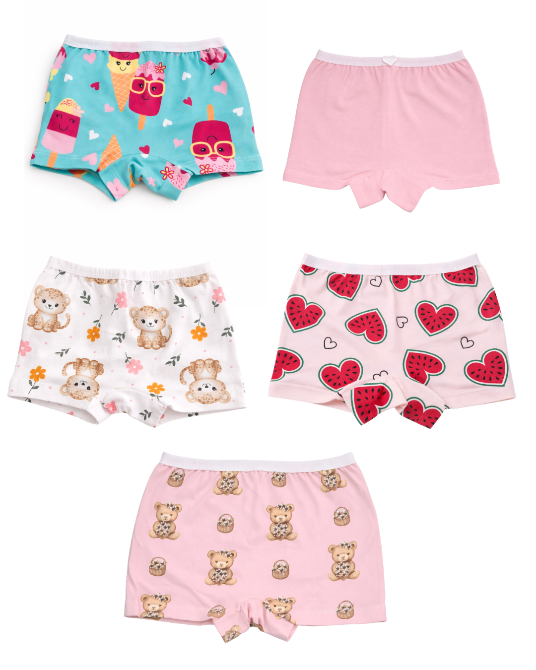 Kit 4 Calcinhas Boxer Estilo Shortinhos Cintura Alta Nova Coleção 2 ao 14 anos