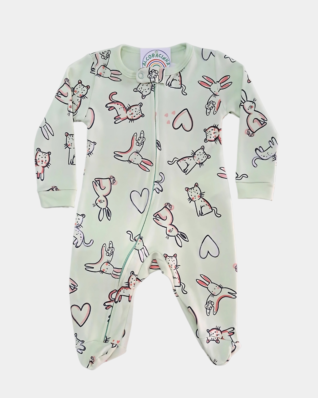 Macacão Bebê 100% Algodão Coelhinhos Verde
