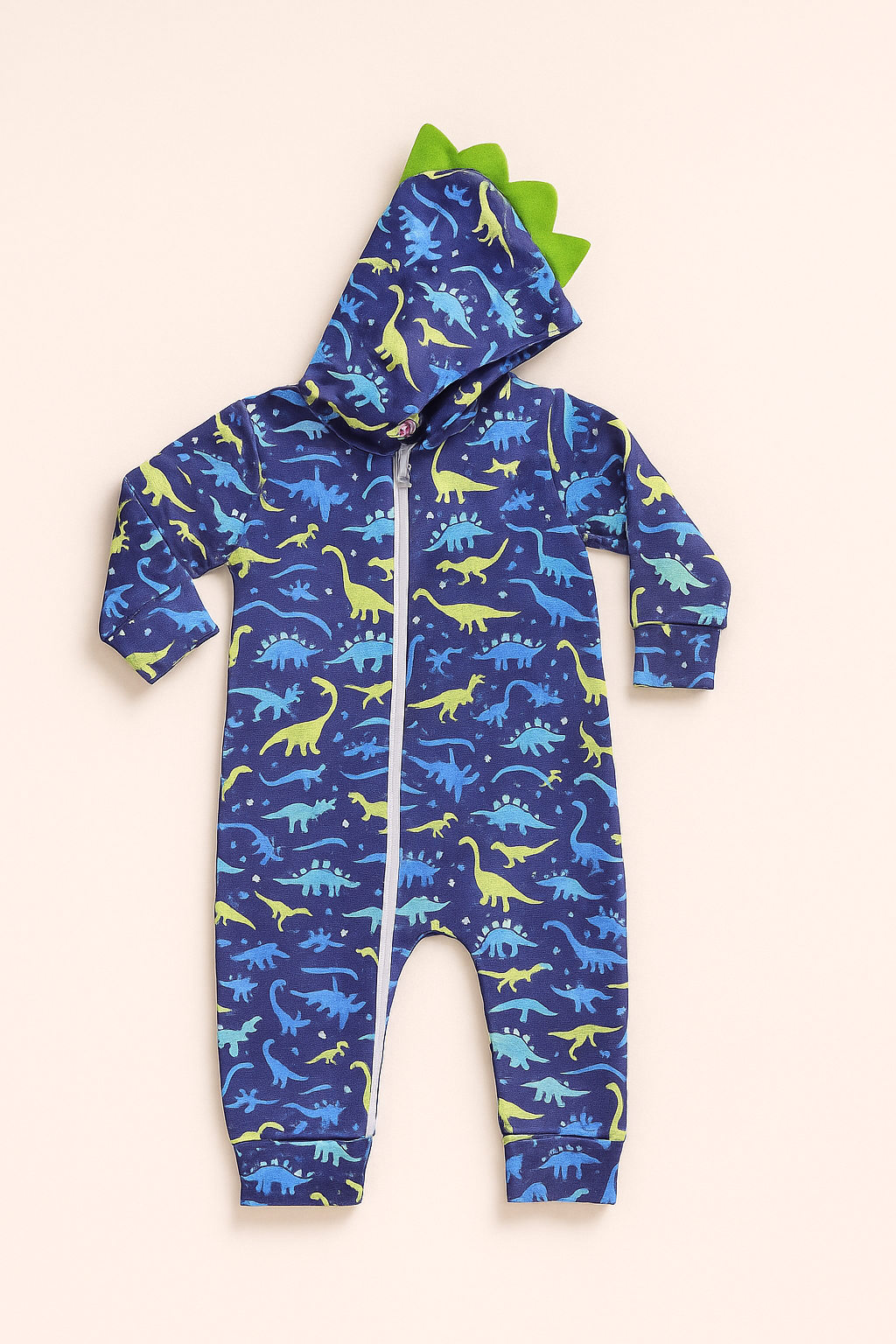 Macacão em Moletom Flanelado Dinossauro com Capuz