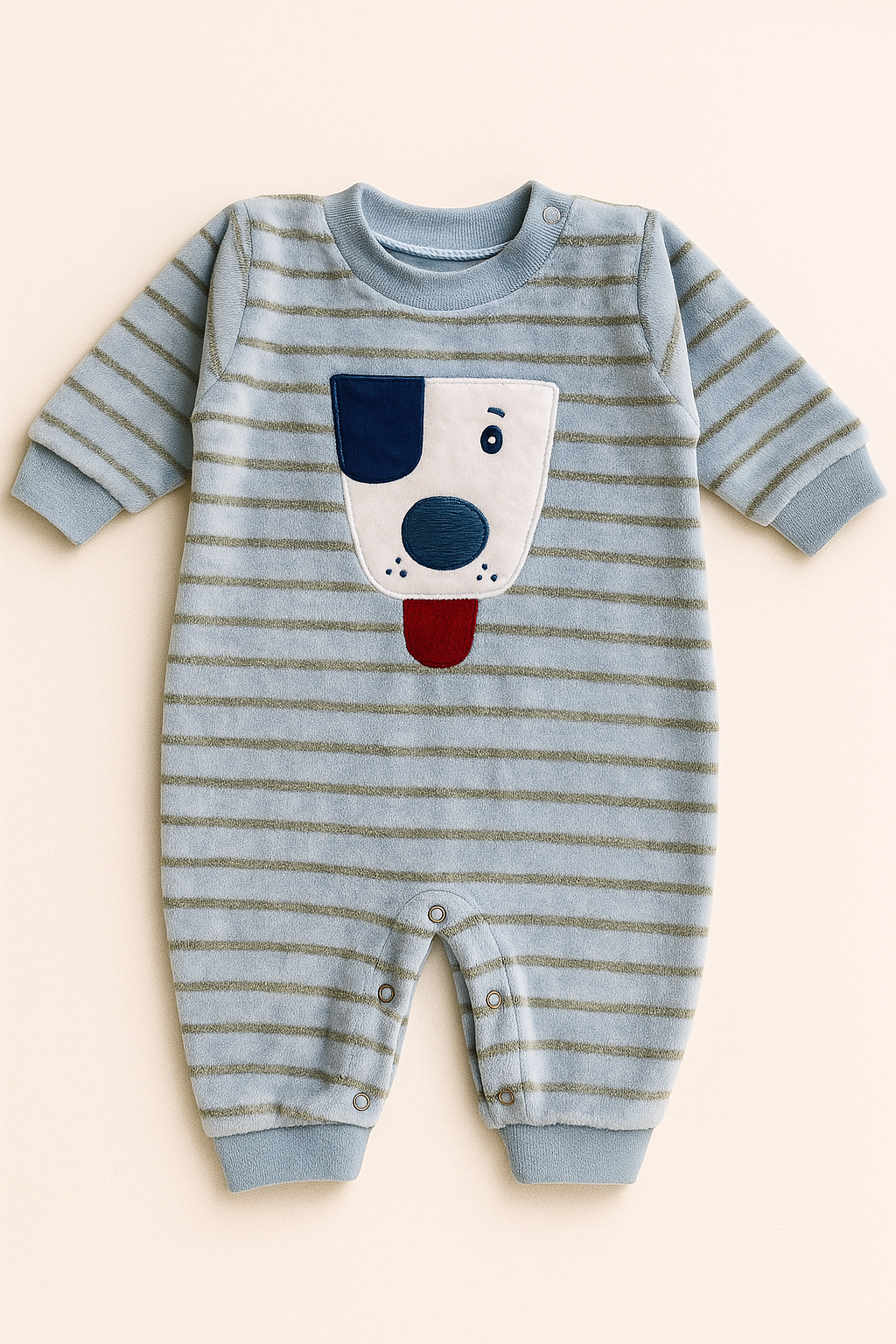 O plush utilizado no Macacão Plush é um tecido resistente a lavagem, não cria bolinhas, não da alergia no bebê e nem machuca a pele, sendo extremamente macio, quentinho e fofinho.
