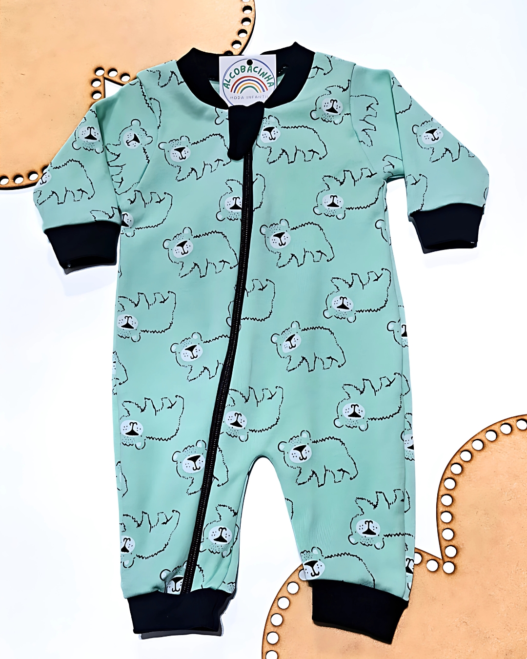 Macacão Bebê Suedine Fio 40 100% algodão Ursinho